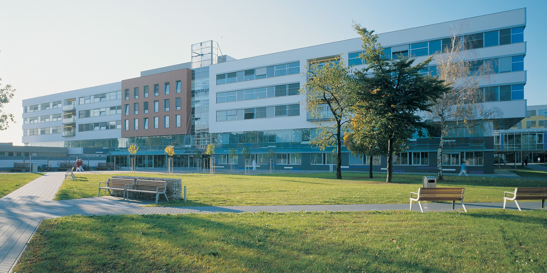 Nový pavilon přináší urbanisticky velkorysý prostor, který evokuje historický koncept centrálního prostoru staré nemocnice. Budova splňuje očekávání lékařů díky jasné orientaci hmoty, komunikací a efektivním provozním vazbám, přičemž respektuje technologickou náročnost stavby.
