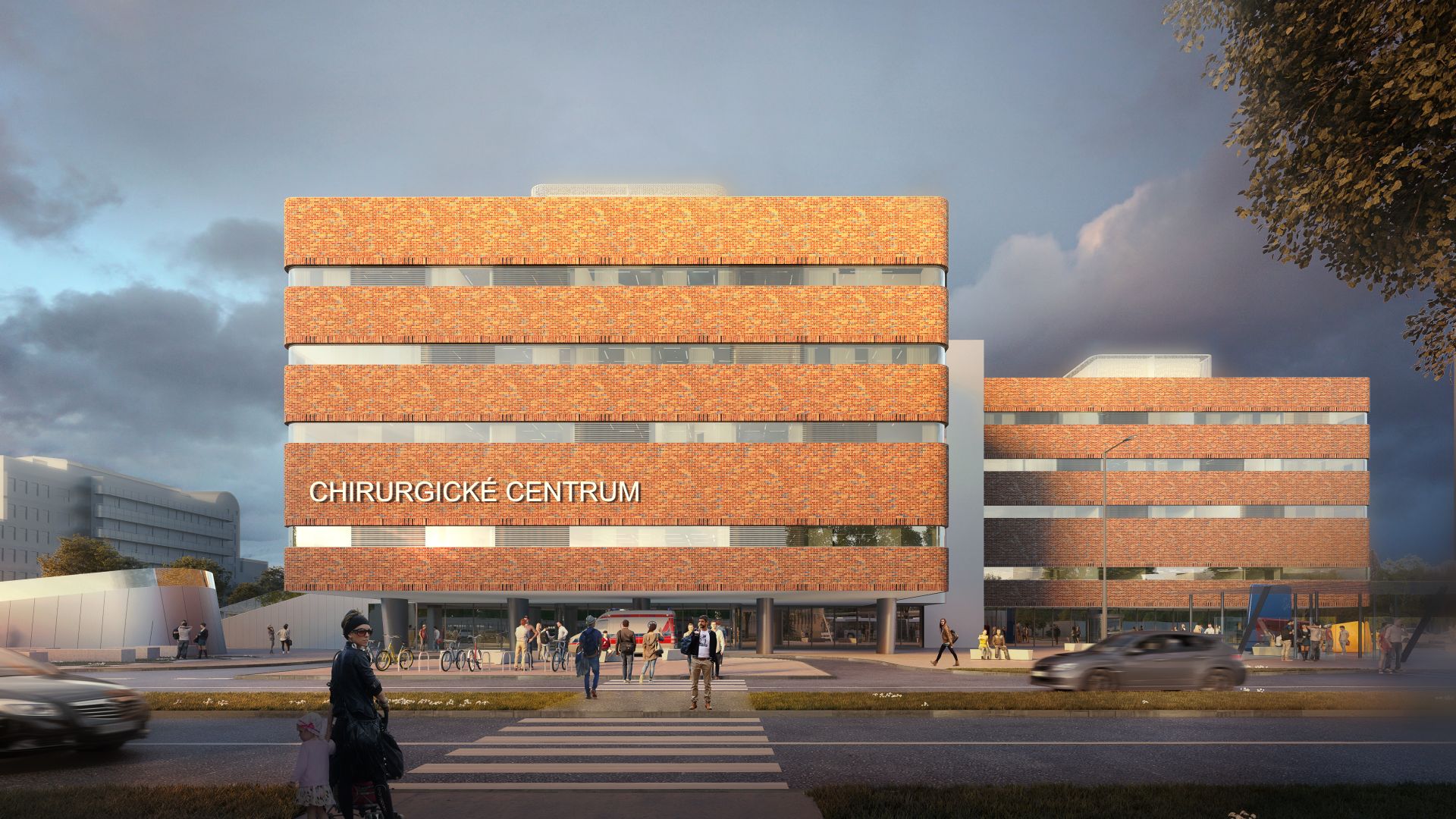 Nový hlavní vstup do CHC bude vytvořen na jižní straně, kde je možné vybudovat dostatečně kapacitní předprostor s mnoha funkcemi a napojením na parking a novou autobusovou zastávku. Nově dimenzovaný vjezd do areálu má za úkol odlehčit stávajícímu vjezdu a rovnoměrně rozložit vstup velkého množství pacientů na dvě strany. Novostavba je navržena pětipodlažní, lůžkové jednotky jsou soustředěny vždy 4 na jedno podlaží. Je to variabilní a ekonomické řešení, které nevylučuje různé kombinace klinik, lepší sdílení zázemí i komplementu a ani případné navýšení objektu.