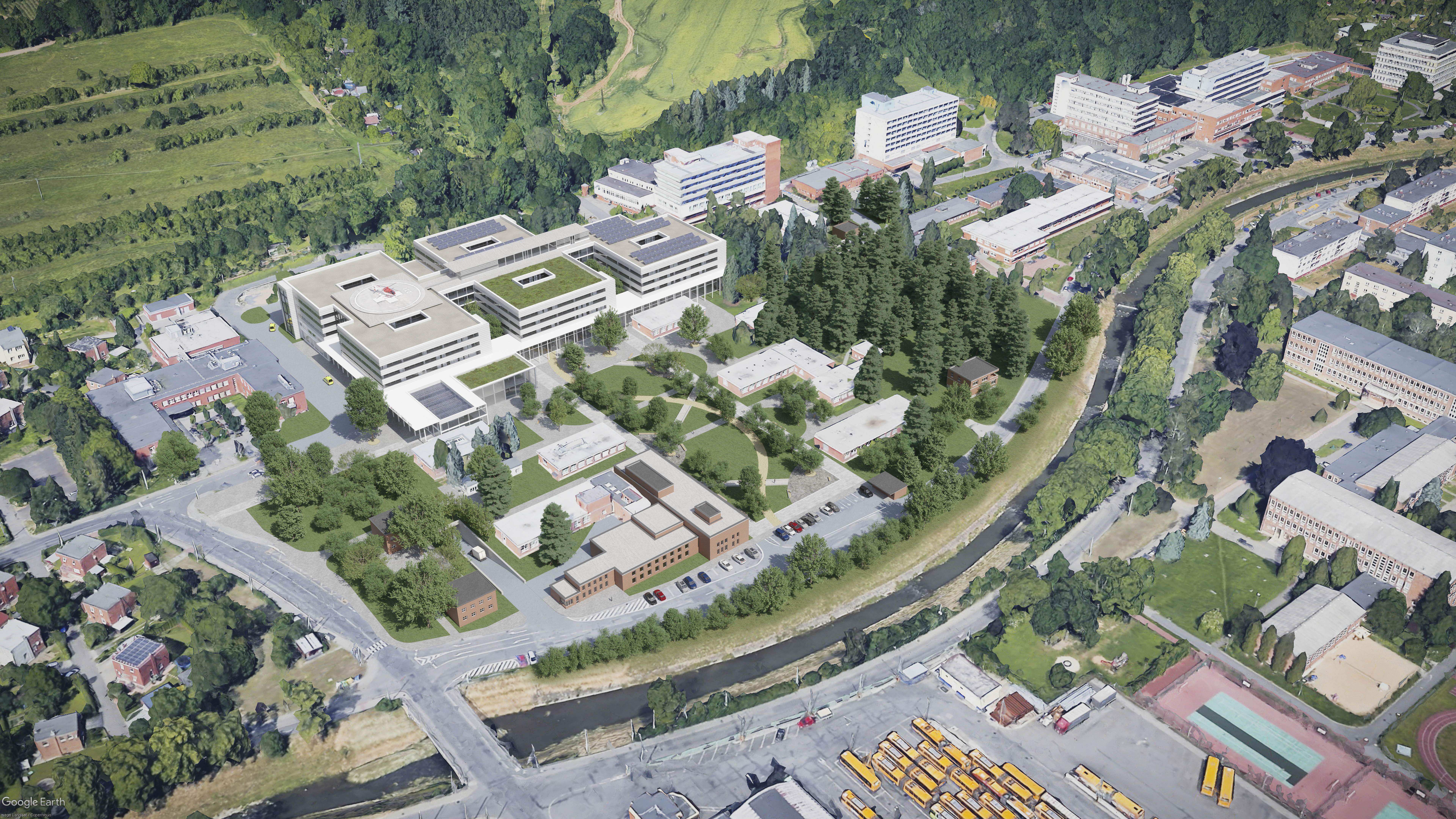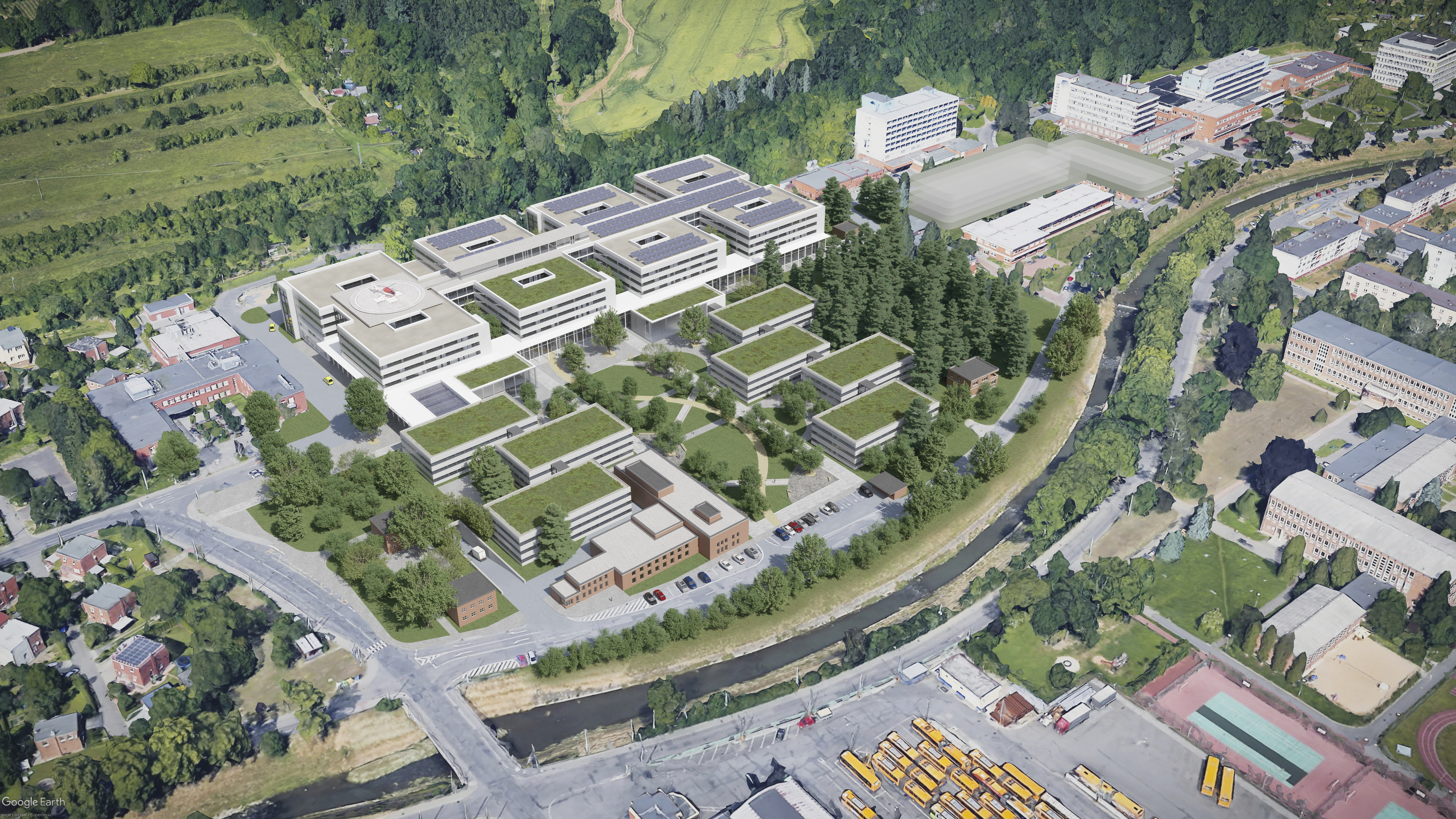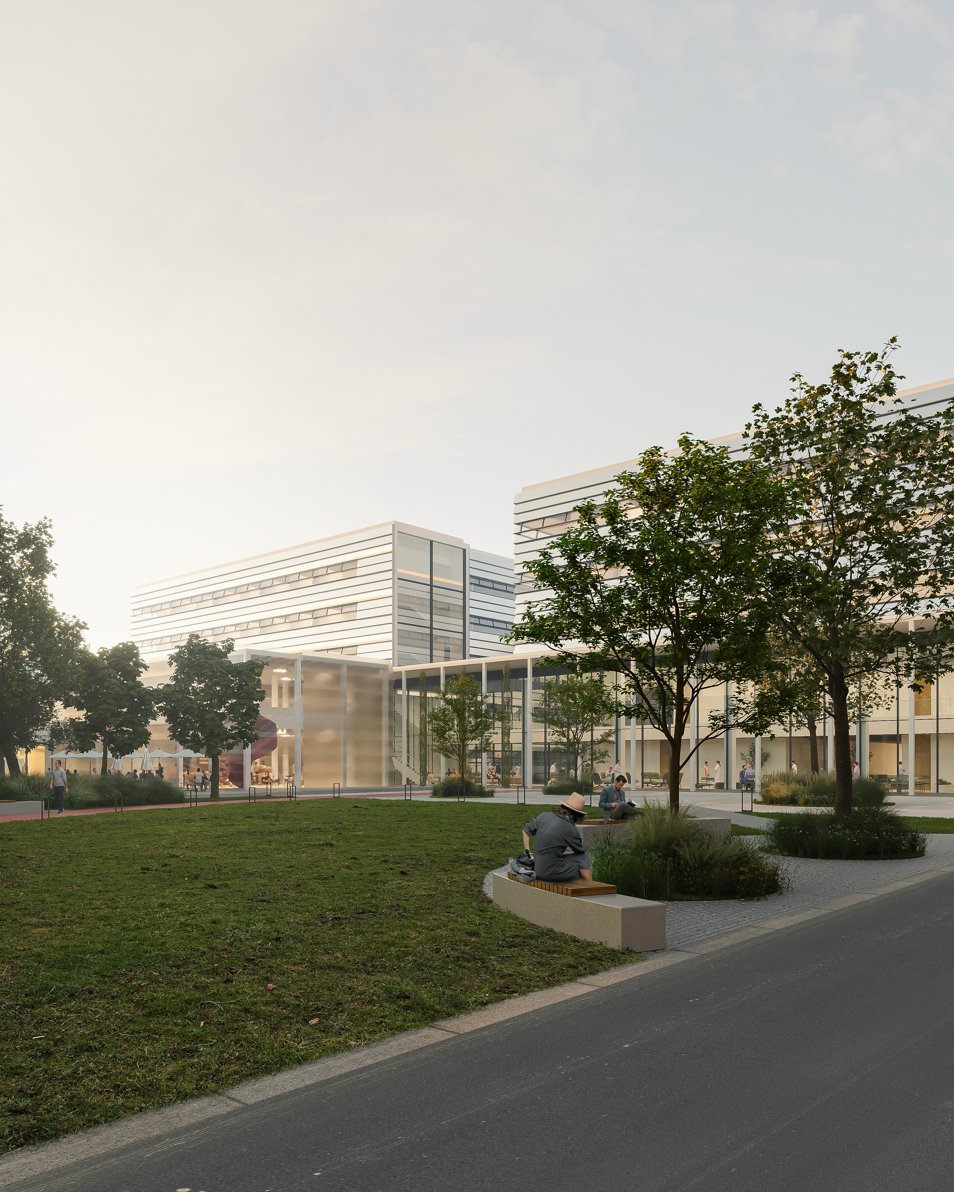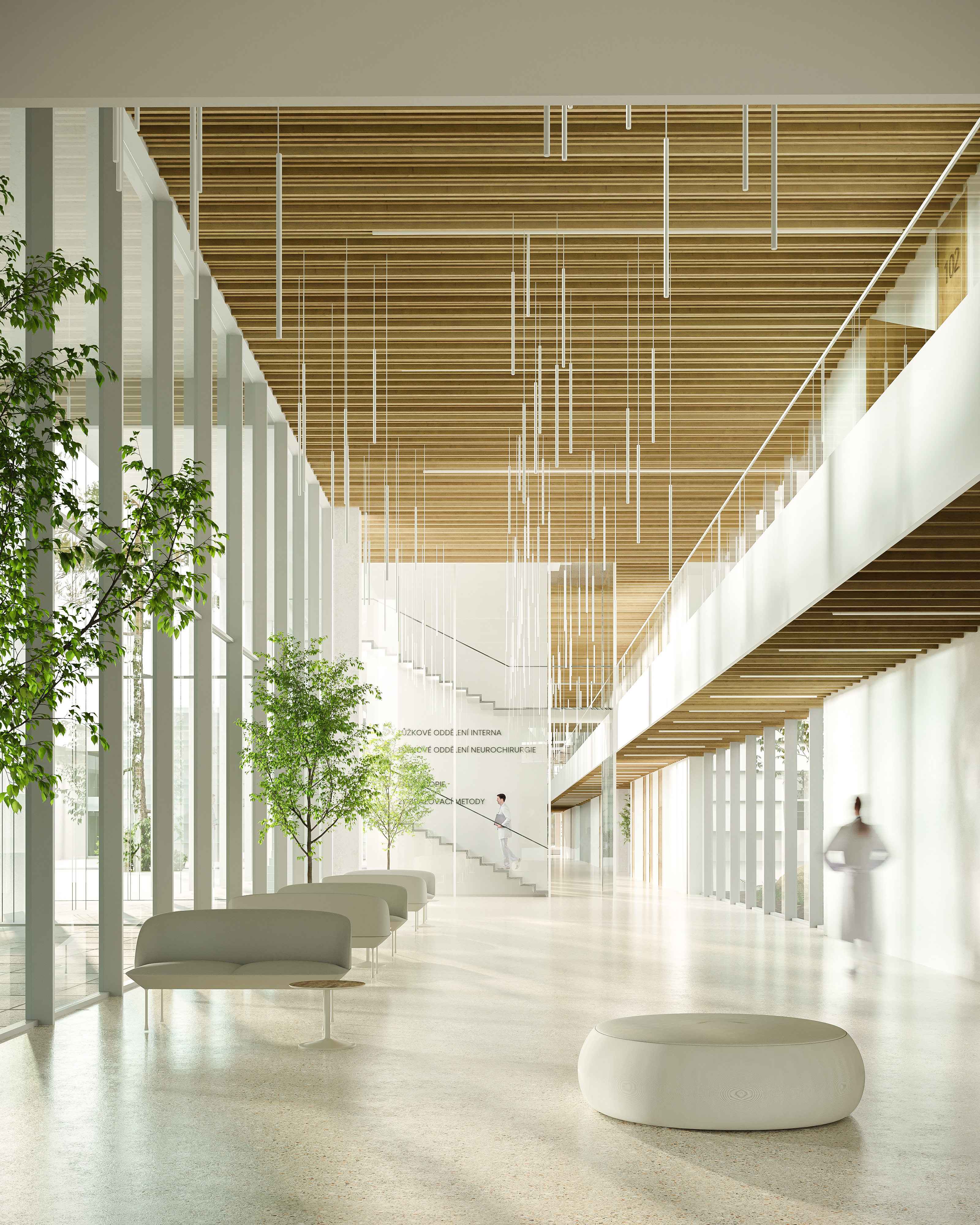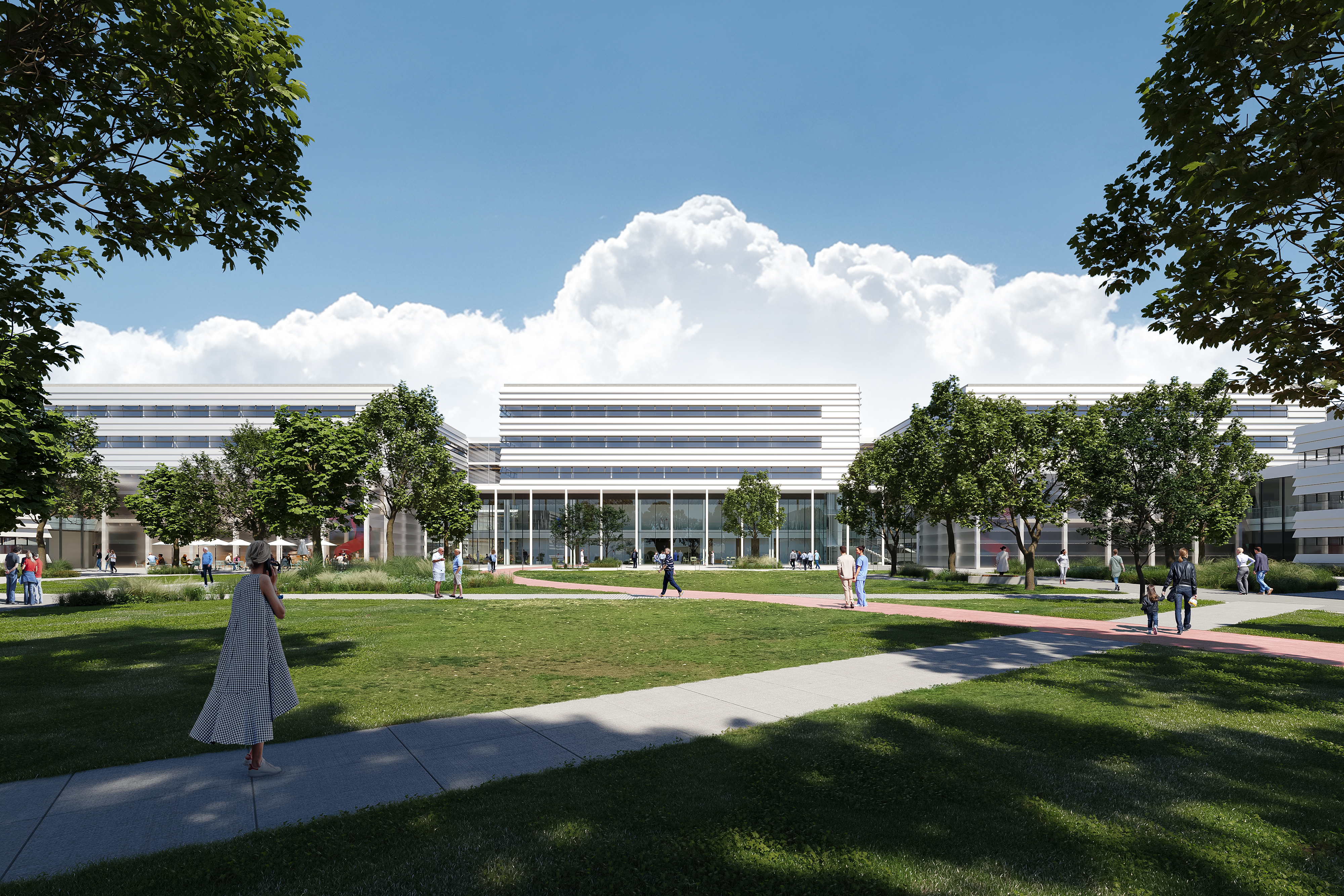Součástí je nový park mezi budovami, podporující koncept „nemocnice v zeleni“ pro klidnou a harmonickou atmosféru, která napomáhá rekonvalescenci pacientů a vytváří příjemné prostředí pro všechny.